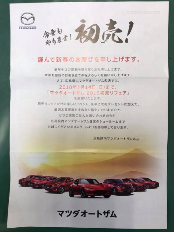新年明けましておめでとうございます。マツダオートザム海田です。