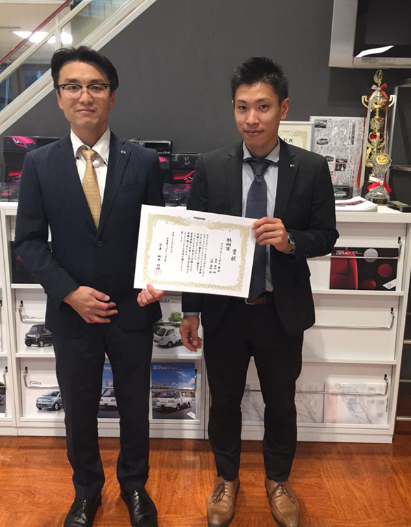 10/7 に行われたマツダウォークアラウンドコンテスト県大会にて我が海田チームの豊谷主任と三浦君が見事、敢闘賞を受賞致しました。11月の支部大会に向けてまだまだ気をぬけません。明日からチーム一丸で頑張ってまいります。