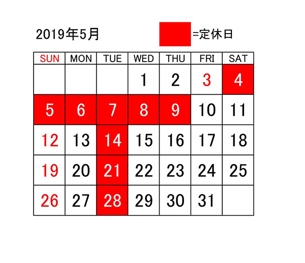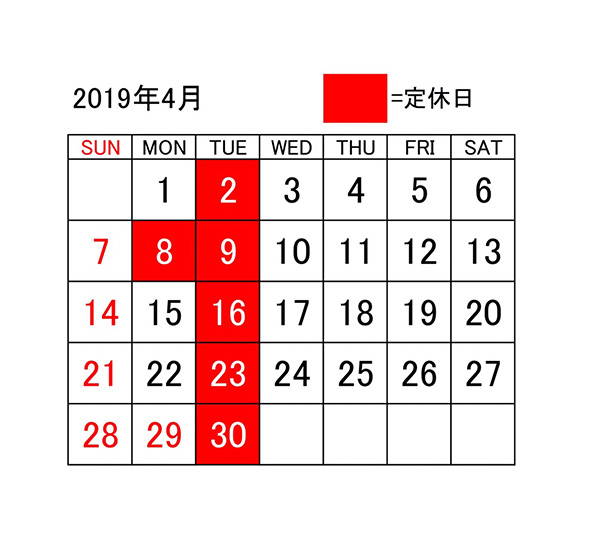 4月は毎週火曜日以外に 8日の月曜日が定休日となります。